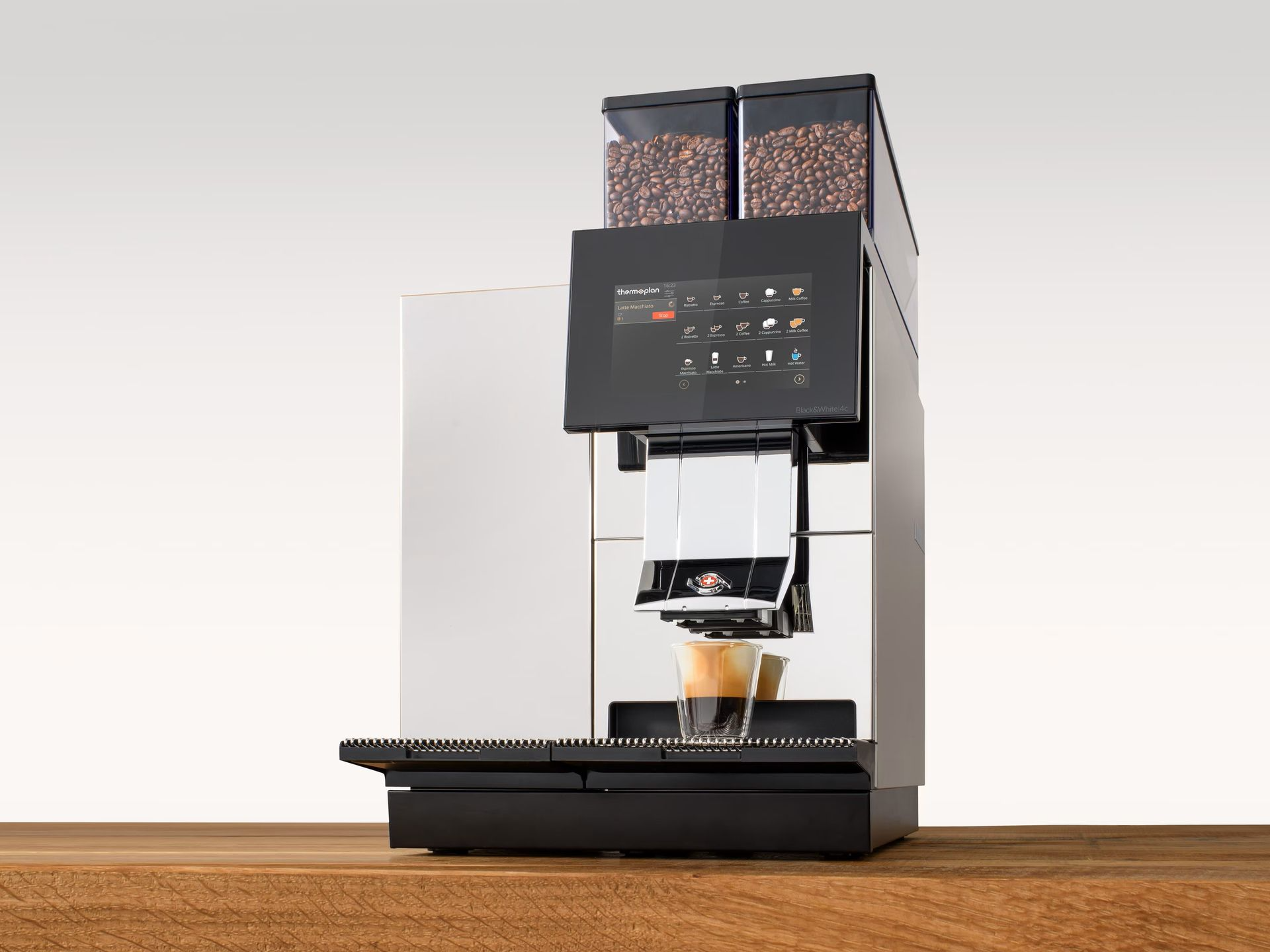 • Fein justierbarer Milchschaum – stets aus zwei verschiedenen Milcharten wählbar