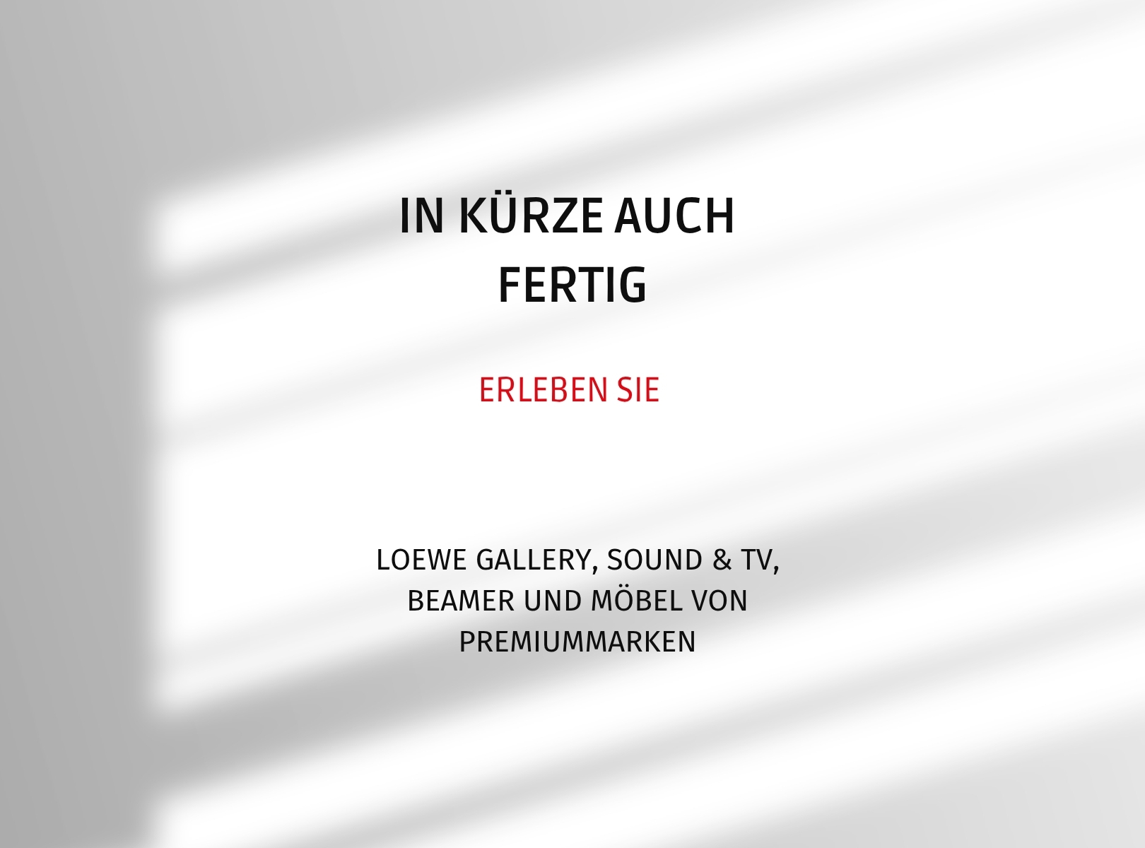 In unserer oberen Etage erleben Sie schon bald die 70 m² große Loewe Gallery. Darüber hinaus präsentieren wir eine Vielzahl an Unterhaltungselektronik und Möbeln – darunter TVs und Soundbars von Samsung, Leica Beamer, Möbel von Yomei und Muuto, Musiksysteme von Sonoro, Lautsprecher von Piega, Canvas HiFi Soundbars sowie viele weitere Premiummarken.