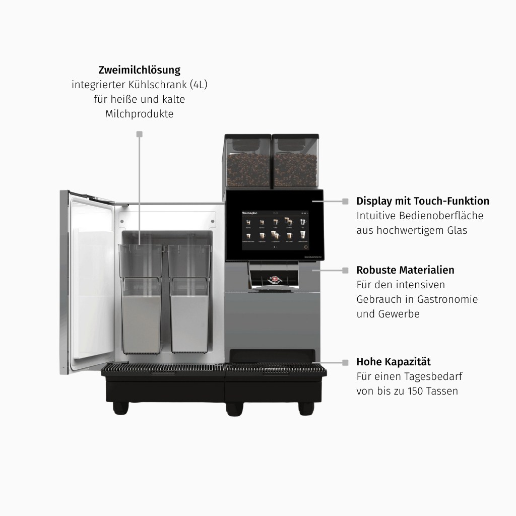- Fein justierbarer Milchschaum – stets aus zwei verschiedenen Milcharten wählbar