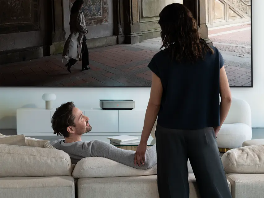 Erleben Sie echtes Kinogefühl zuhause – ohne sperrige Installation. Der Cine 1 & CinePlay projizieren aus ultrakurzer Distanz auf eine passende Leinwand und fügen sich dank hochwertiger Materialien harmonisch in den Raum ein.