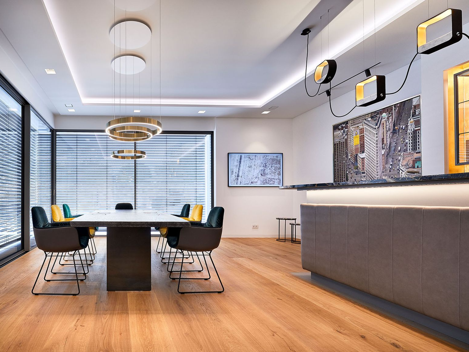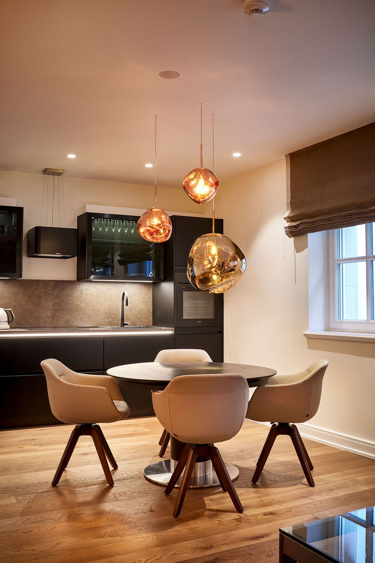 Die perfekte Verbindung von Funktion und Genuss. Blendfreies Arbeitslicht über der Küchenzeile und stimmungsvolles Licht über dem Esstisch für gesellige Runden.
