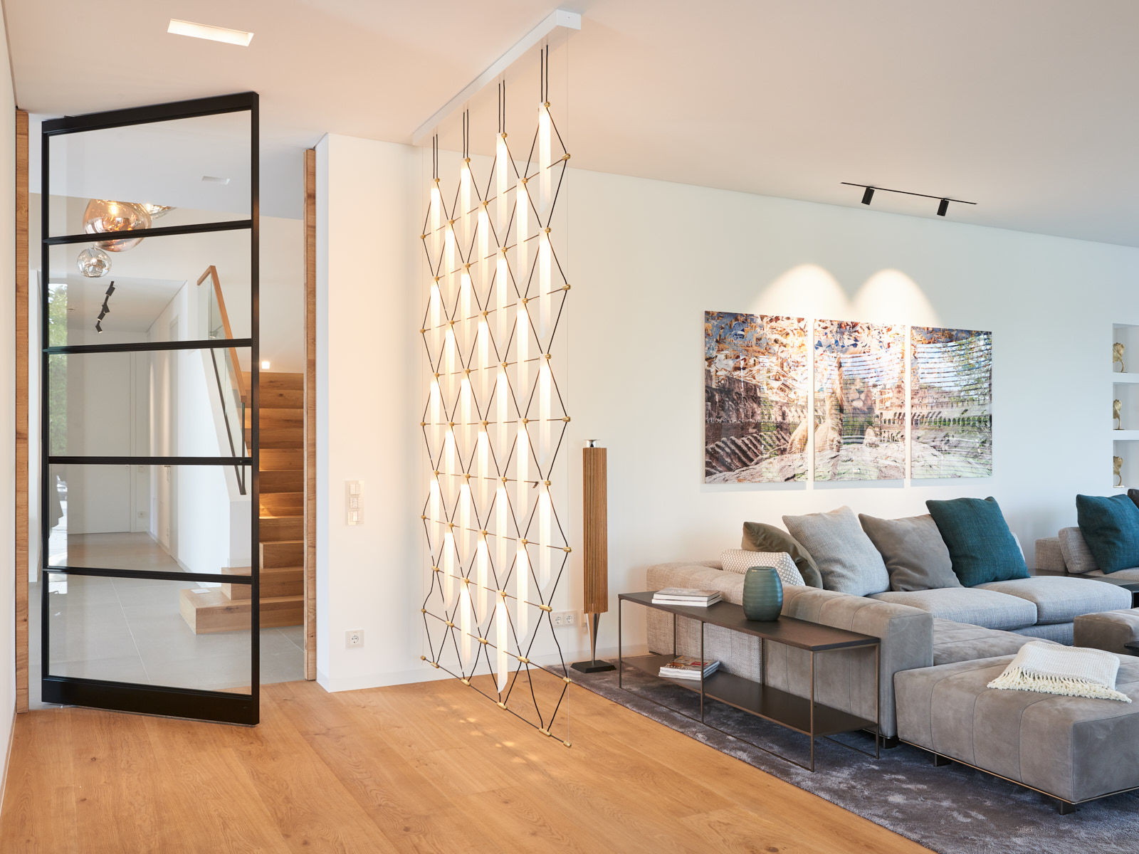 Mehr als nur ein Durchgangsort. Intelligente Beleuchtung, die Sie sicher leitet und Ihre Gäste mit einem einladenden Ambiente willkommen heißt.